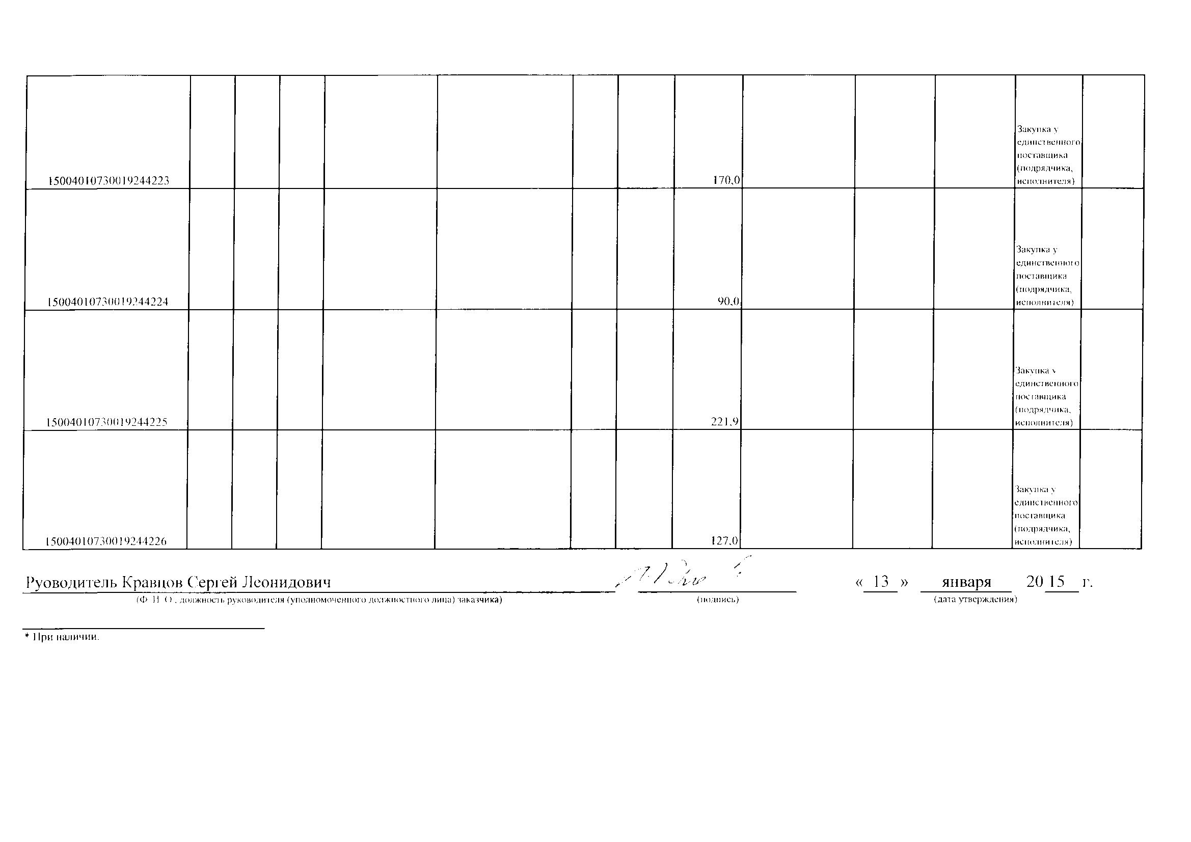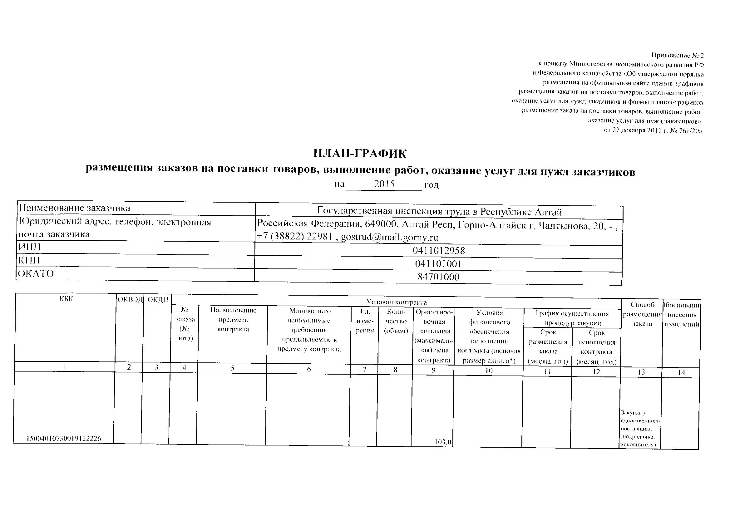 План-график размещение заказов на 2015 г. версия 1 (Ссылка); в формате PDF; в формате jpeg лист 1, лист 2, лист 3- АННУЛИРОВАН в связи с перевод плана-графика в структурированную форму.